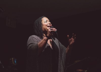 (Fay Victor performing at Greenwich House. Photo: Nathan Bajar for The New York Times.)