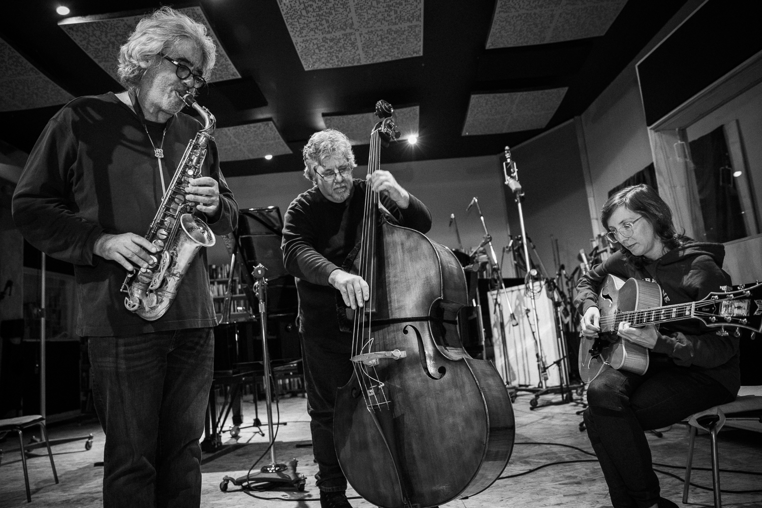 Bassist-composer Michael Formanek’s Very Practical Trio – featuring saxophonist Tim Berne and guitarist Mary Halvorson – returns to the Sound It Out series for the final show of 2019, celebrating the Intakt release of Even Better, the trio’s first album together. Michael, a longtime Sound It Out favorite, scored three consecutive five-star reviews in DownBeat for his previous albums on ECM, and The New York Times has described his music as “graceful in its subversions, even sumptuous.” Jazzwise has praised Tim’s art as being “suffused with genuine humanity and more than a little wisdom,” while the Wall Street Journal called Mary “one of the most exciting and original guitarists in jazz – or otherwise.” The music of Even Better conveys Michael’s special sense of instrumental song. “It may not be what comes to mind for some people when you say the word ‘song,’ but it’s a personal idea of song for me,” he explains. “I conceived the compositions as cohesive, song-like structures, with a lyrical quality – not just head/solo/head in the usual jazz way. The pieces aren’t overly arranged, but the improvisations do spin out of the material of the songs and then go back into it. I think this record really brings out the tuneful nature in everyone’s playing.”